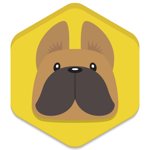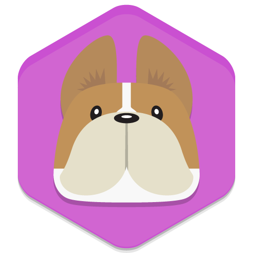 フレンチブルドッグのフラットな六角形アイコン。